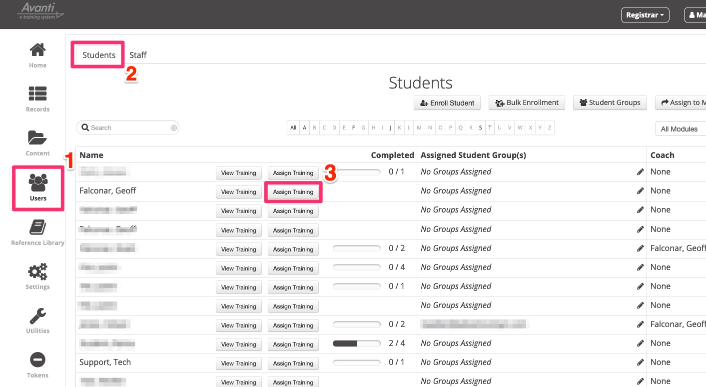 HOW TO ASSIGN TRAINING TO A STUDENT FROM MODULE SECTION