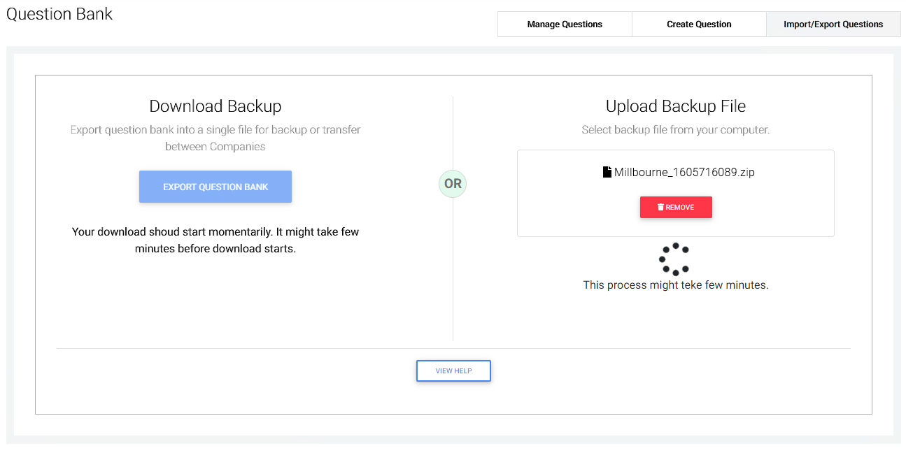 By clicking the button, you have engaged the export process. Depending on the size of the Question Bank, the time to export might be instant or take few minutes.