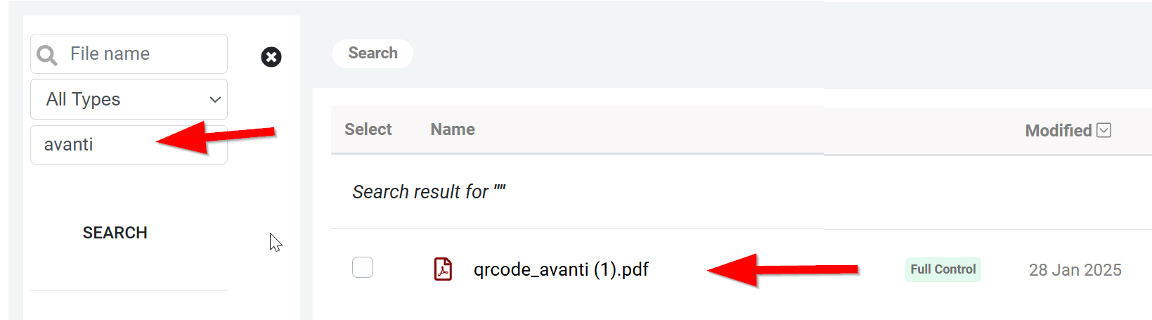 Our search for keywords is located at the top left of the Document Manager feature.