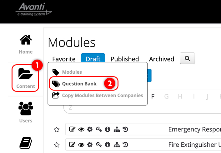 The Question Bank allows you to manage the questions used in modules as review questions.